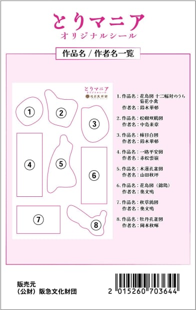 「とりマニア」展から 美しい鳥たち8種がシールになりました。